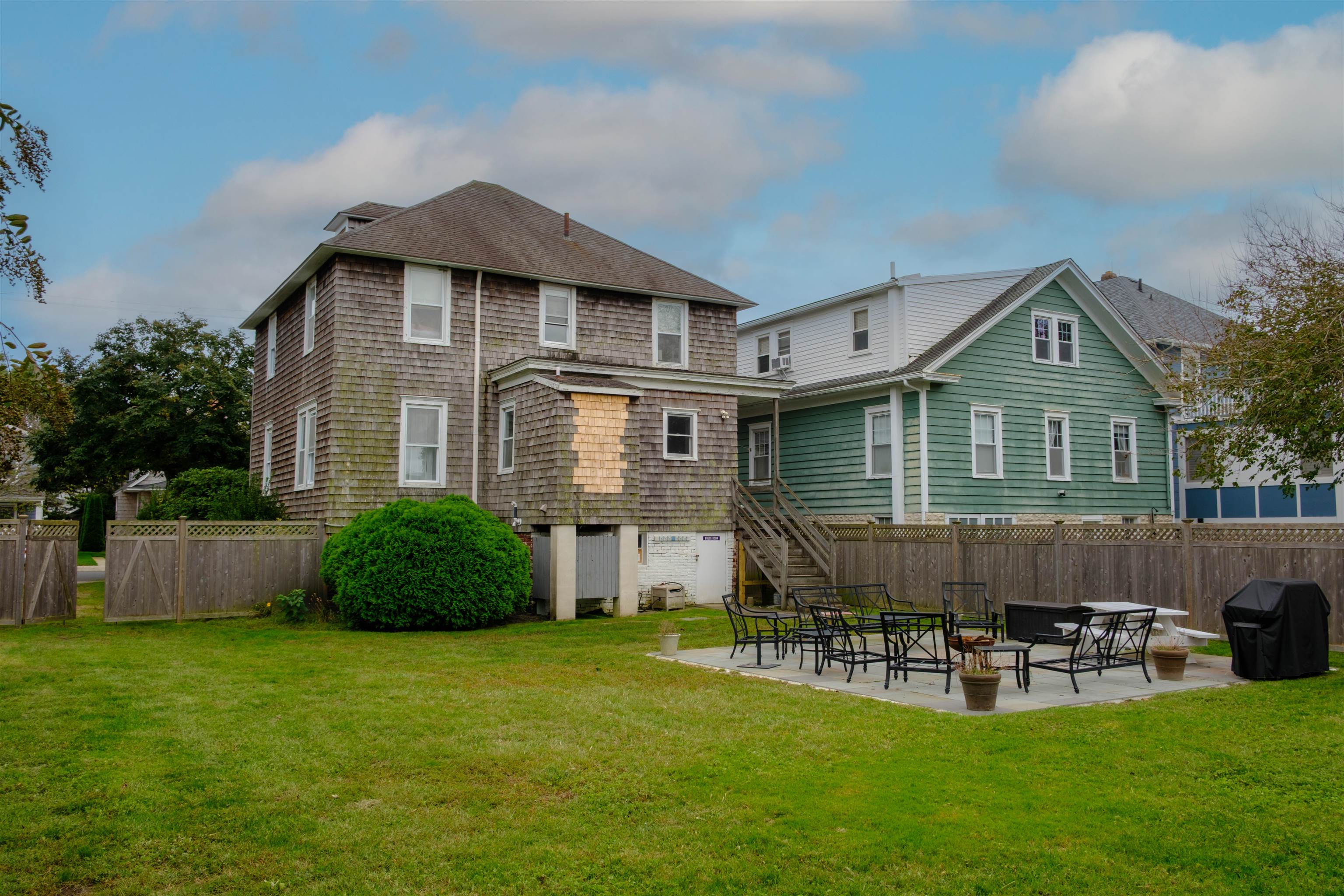 Welcome to a Cape May classic. Nestled in one of the most coveted neighborhoods, this timeless cedar-shake home embodies coastal charm just two short blocks from the beach. Featuring 6 bedrooms and 3 full baths including two spacious primary suites (one conveniently located on the first floor) this property offers room for everyone to unwind. Enjoy morning coffee or evening breezes from the inviting rocking-chair front porch, or entertain in the large backyard with its expansive patio perfect for summer gatherings and offering potential for a beautifully landscaped yard, and possibly even a future pool. The oversized 60 x 125 lot provides both space and privacy, completed by a fully fenced yard and a refreshing outdoor shower for after-beach days. Inside, you'll find a formal dining room, a bright and comfortable living area, a brand-new kitchen, and a basement with a game room and additional storage, accessible via an outside entrance. This home beautifully balances Cape May tradition with modern comfort a rare opportunity to own a true shore classic in a prime location. Experience your ideal beach lifestyle, ready for immediate enjoyment.