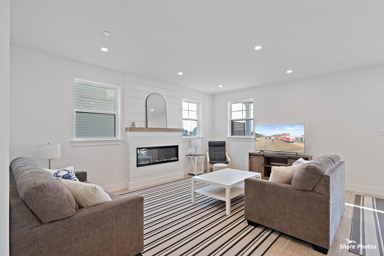 Built in 2024, this condo has spectacular Sunset and Bay views from your large private deck! This is a hot location near the long-awaited Wildwood Back Bay project and is positioned across from Maxwell field and the Byrne Community Center. This condo has some beautiful finish work with engineered plank flooring throughout, large kitchen island, quartz countertops, ceramic tile bathrooms, designer living room fireplace, on-demand hot water heater, LED recessed lighting throughout and much more! The ground floor has an attractive entryway common area with motion sensor interior lighting, driveway and garage parking, and a huge private storage room which leads to the rear yard. Many condo owners convert these large storage areas into family game rooms. Come check out this beautiful condo and scenic views, you won't be disappointed!