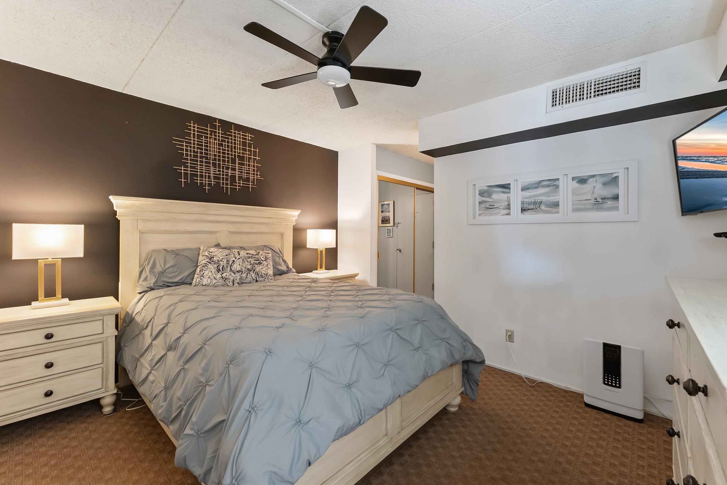 Welcome to the most unique unit at The Regency! This beloved oceanfront complex with a huge pool contains only ONE UNIT with an oversized private deck that has a custom entrance to the pool deck! Renters flock back to this updated 2 bedroom 2 bath turnkey unit year after year for this feature, net income was $28,453 in 2025 and $26,641 in 2024! Enter to find a light and bright open concept kitchen with newer appliances, dining area with seating for 3, breakfast bar with seating for 3 more, large sectional couch and queen sleeper sofa with sliders leading directly to the private deck and pool deck entrance. The front bedroom features a double daybed with twin trundle and sliders leading to the deck, the second bedroom is the large master with ensuite. This unit comes fully furnished and turnkey, sellers will include the TWO large storage units located just down the hall. Regency Tower amenities include a huge POOL, fitness center, office space with free Wi-Fi, community room with an ocean view, bar and kitchen 2 bike storage rooms, laundry rooms, and year-round maintenance office. The monthly condo fee is $703 and includes basic cable, electric, water, sewer, trash, master liability insurance, master flood insurance and common area maintenance.