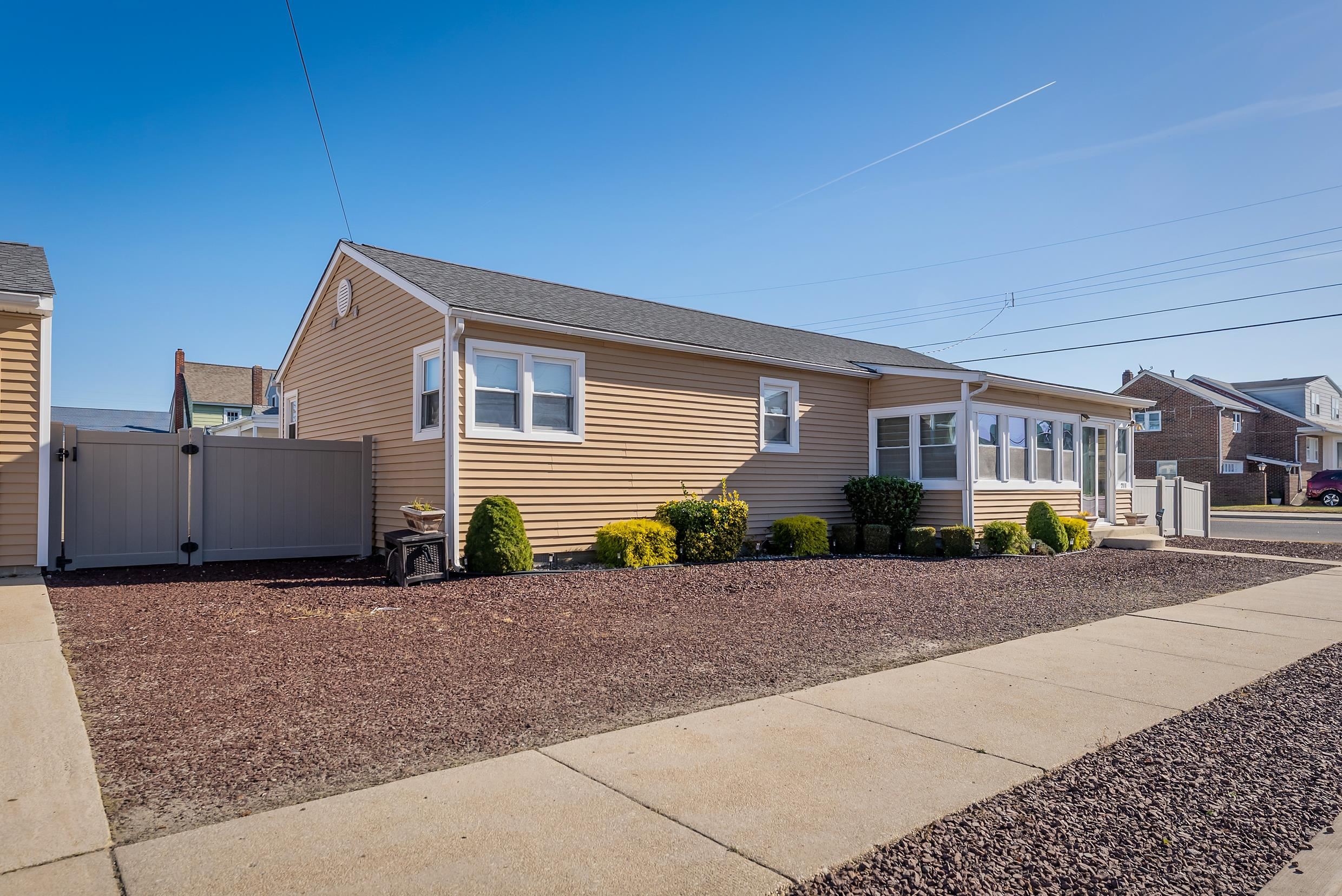LOTS OF POSSIBILITIES!! This single-family home in Wildwood Crest is situated on a 50x100 CORNER lot with a DETACHED 2 CAR GARAGE. Just 3 short blocks to the beach and close to tennis courts, parks, bike bath and so much more. The home consists of three bedrooms, two full baths, updated eat-in kitchen with snack bar and living room. Most of the living space has hardwood flooring. The home also offers a utility room with washer and dryer and enclosed sunporch with sliders and windows to allow in the natural light. Equipped with gas heat and central air. The fenced yard can be enjoyed by the family and pets. The rear of the house has a storage shed and outdoor bathroom. The garage NOT ONLY accommodates two cars, plenty of storage room for bikes, beach fishing gear and shelving, but it also has a work bench for those who like to tinker. The garage conveniently has front and rear access. That s not all the home is equipped with a Generac generator. Utilize the home the way it is, customize it to your liking or BUILD A NEW CUSTOM HOME!